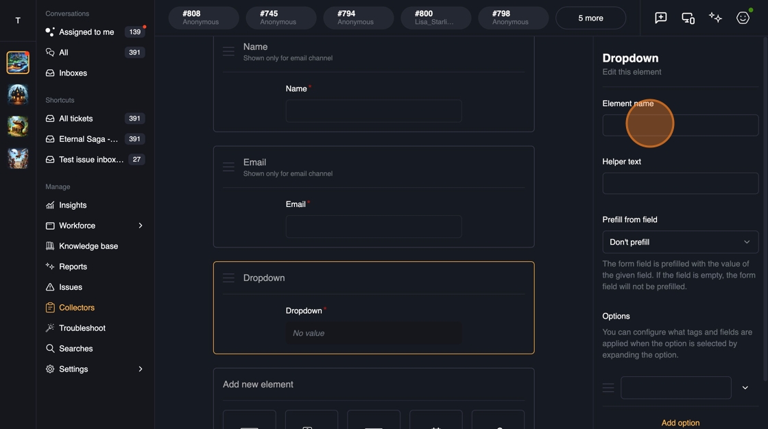 Each element type has a bit different options but let's go through creating a dropdown element as an example.