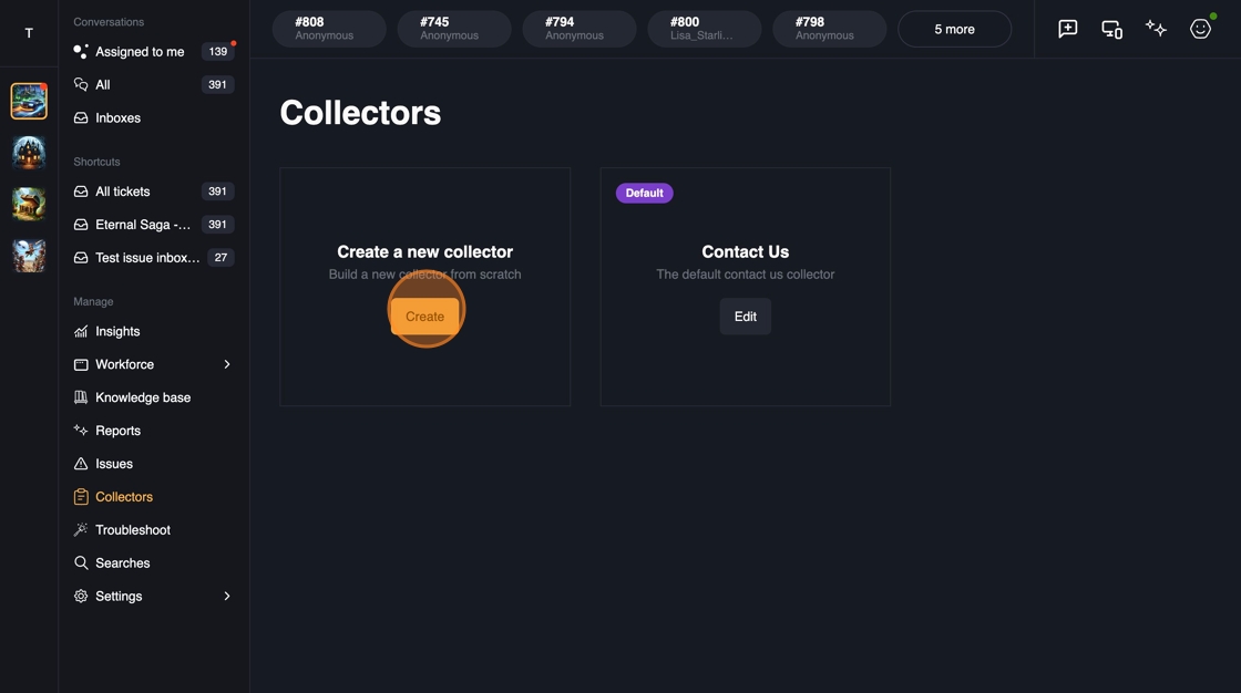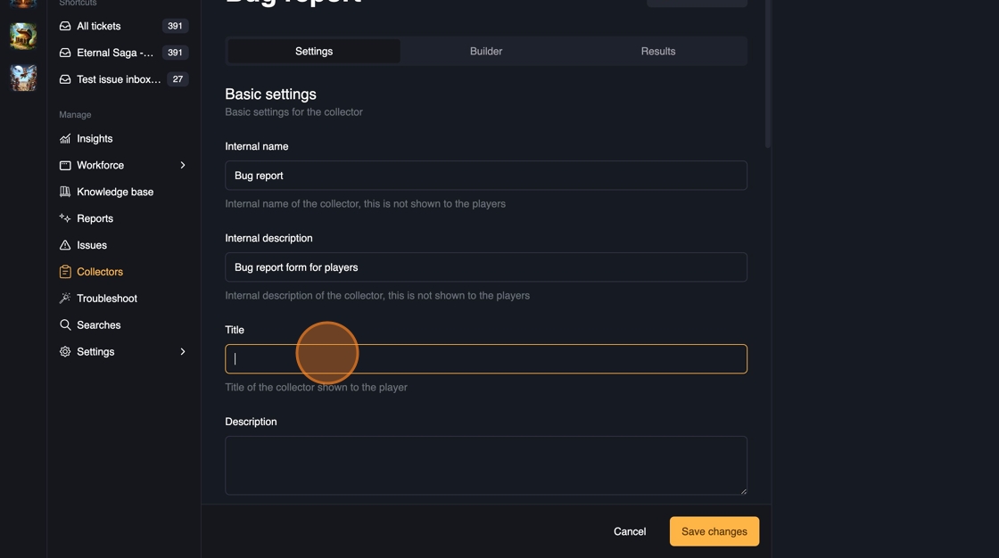 To create a collector, first select a game and then navigate to the Collectors in the navigation. From the collectors view, click Create new collector.
