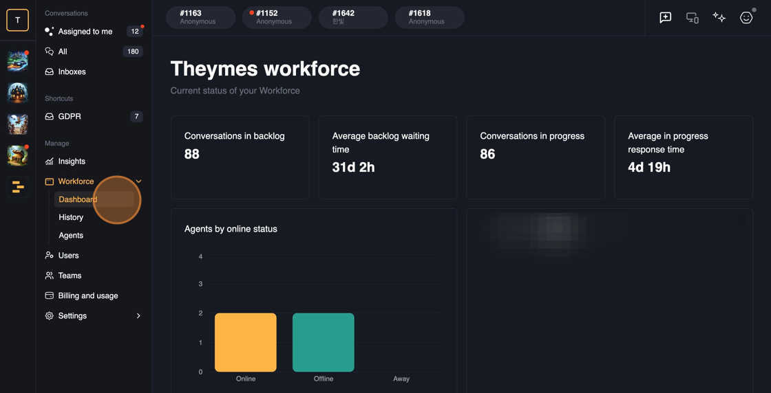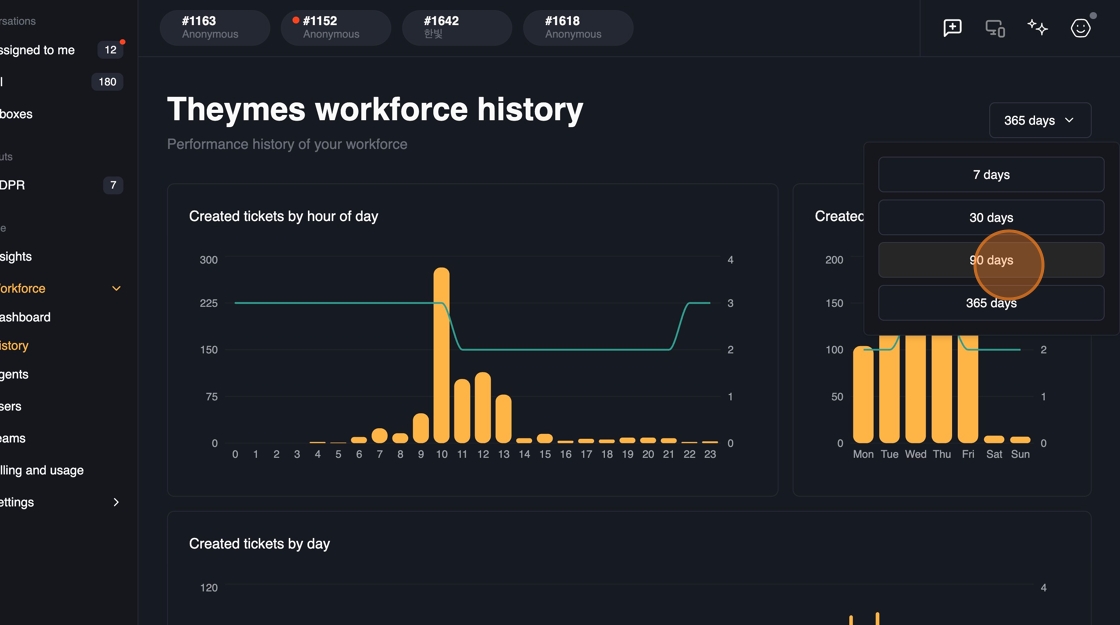 2. Workforce dashboard shows up-to-date information of conversations in backlog and language. This makes it easy to track and monitor the overview incoming tickets.